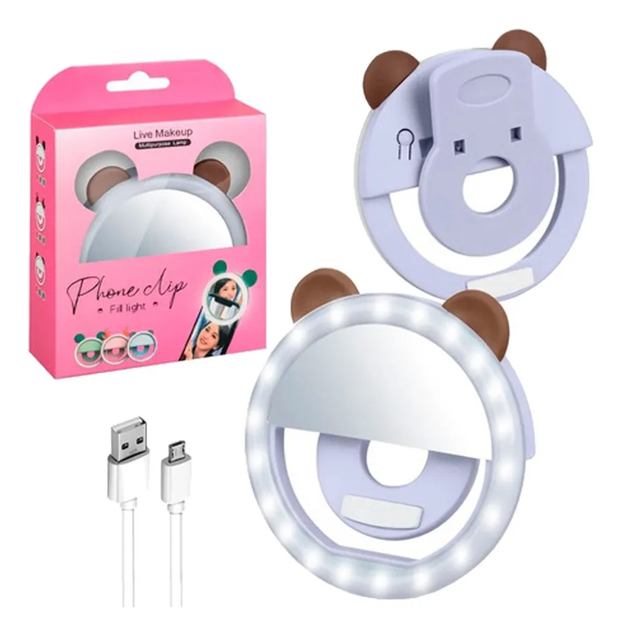 ARO LUZ SELFIE OREJITAS RECARGABLE CON ESPEJO