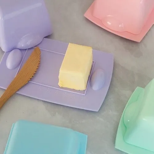 Fabricada en plástico de alta calidad, esta mantequera es apta para lavavajillas, lo que simplifica su limpieza y mantenimiento. Los colores pastel aportan un toque de estilo y alegría a tu cocina, convirtiéndola en un accesorio atractivo y útil.