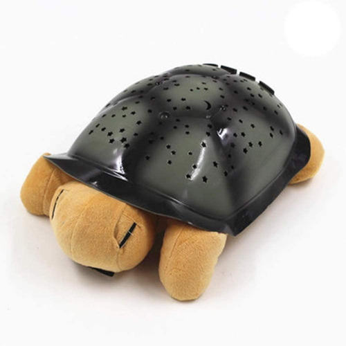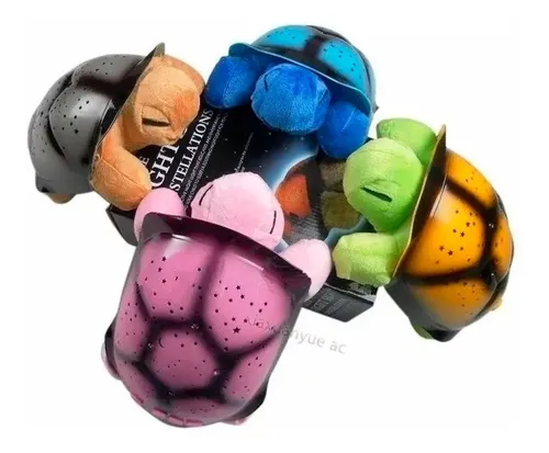 Luz de noche con forma de tortuga, que proyecta Estrellas de colores en el techo y las paredes desde su caparazón Se puede programar para que suenen 4 Suaves melodías que ayudaran a dormir a su bebe. Genera un efecto luminoso que decora toda la habitación con luna y estrellas. Emite Luz Fija Verde, Azul, Roja o Amarilla. Ademas puede programarse para que vaya cambiando de color de forma automática.