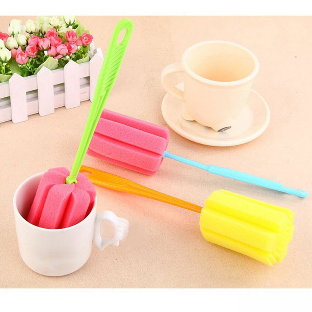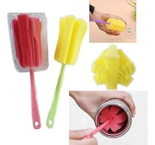 Cepillo esponja multiuso con mango para limpieza de vasos y botellas, super practico y cómodo para facilitar y brindar una limpieza más profunda a botellas, frascos y vasos.