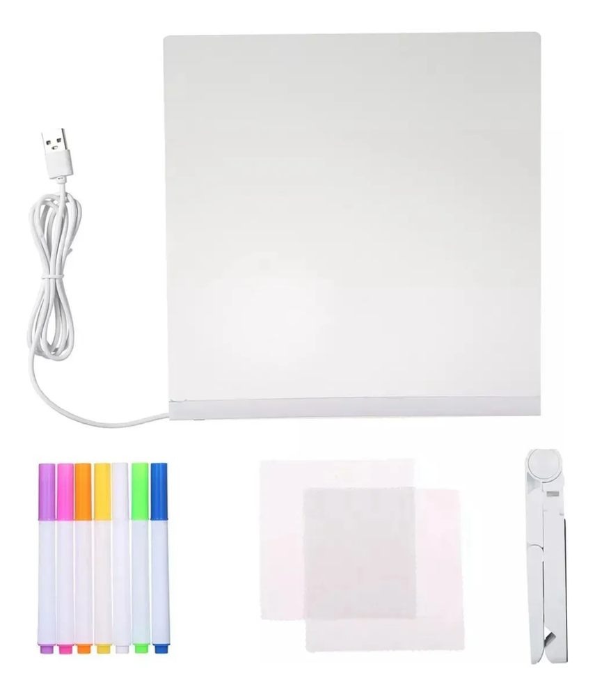 Pizarra LED Acrílica Iluminada 15x15cm + 7 Marcadores + 2 paños ¡Diversión Creativa para Niños!