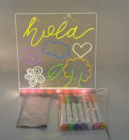 ¡Dejá volar la imaginación de los más chicos con esta increíble pizarra LED acrílica luminosa! Ideal para jugar, aprender, decorar o dejar mensajes súper originales. Perfecta para regalar y transformar cualquier rincón en un espacio lleno de creatividad y color.