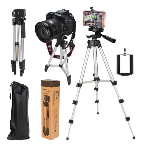 Este trípode de aluminio extensible y estable gracias a su sistema de soporte inferior, es regulable con nivel incorporado para tomar las mejores fotos o videos en forma equilibrada. Características: