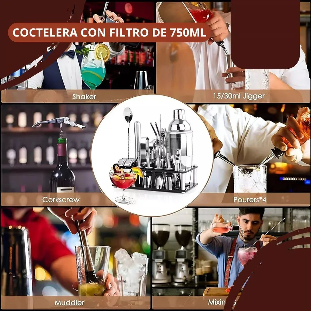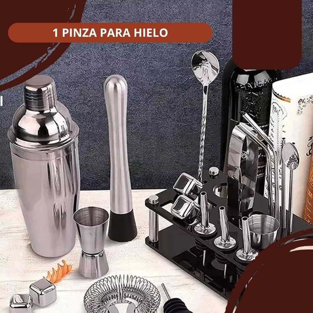 Coctelera 750ML - Soporte - Jigger - Revolvedores - Hielos