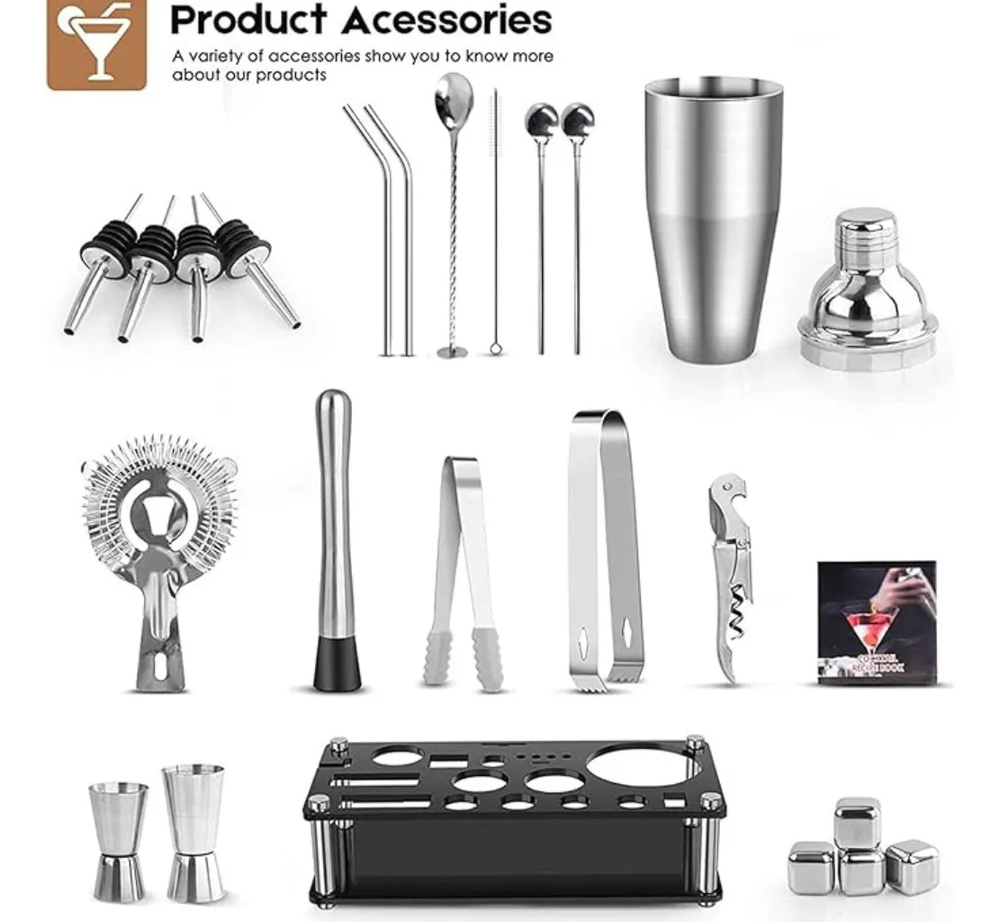 Con este set es posible preparar una gran variedad de cócteles clásicos y contemporáneos, desde margaritas, mojitos y piñas coladas hasta martinis, daiquiris y negronis. Cada herramienta ha sido diseñada para ofrecer una experiencia completa, permitiendo a los usuarios experimentar con nuevas recetas y mejorar sus habilidades en la mixología.
