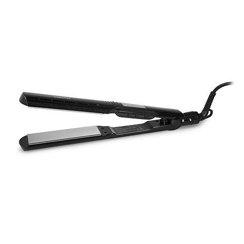 Voltaje: 220V. Posee placas de titanio. Alcanza una temperatura máxima de 220 °C. Incluye 5 niveles para planchar. La pantalla es led. Plancha iónica. Funciones:Cuidado iónico.