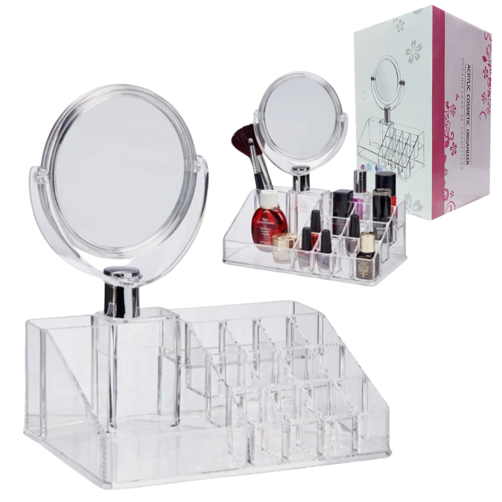 ORGANIZADOR DE COSMETICOS MAQUILLAJE ACRILICO CON ESPEJO