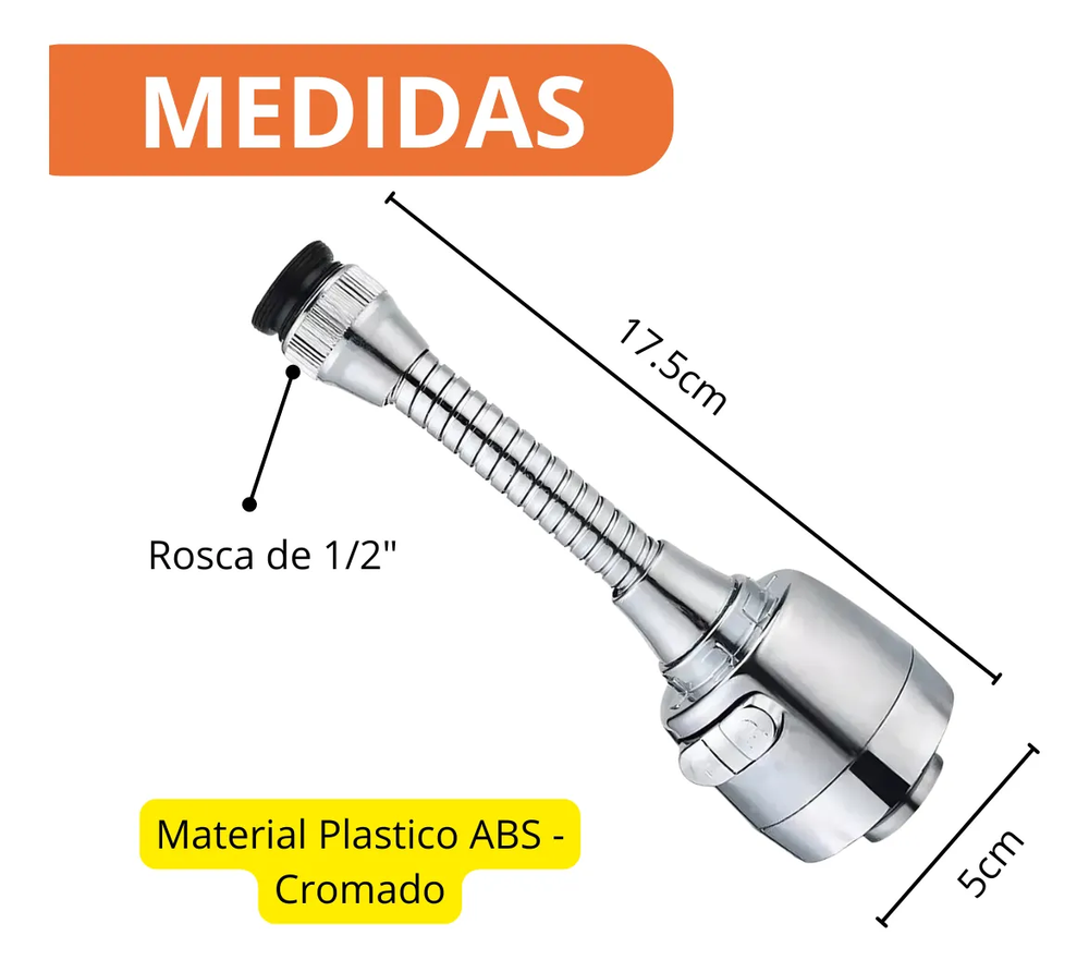 Ducha Adaptador Multifuncion Conversor Extensor Flexible Boquilla De Canilla Pico A Rosca de ½ Pulgada Para Cocina Plastico Inoxidable Giratorio Color Plateado Cromado