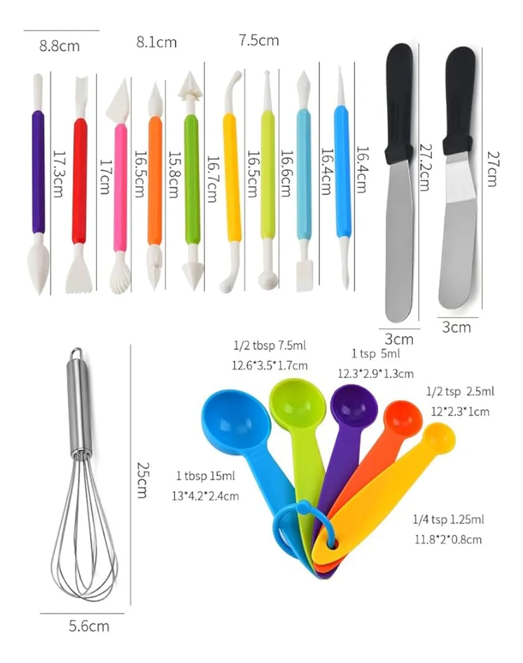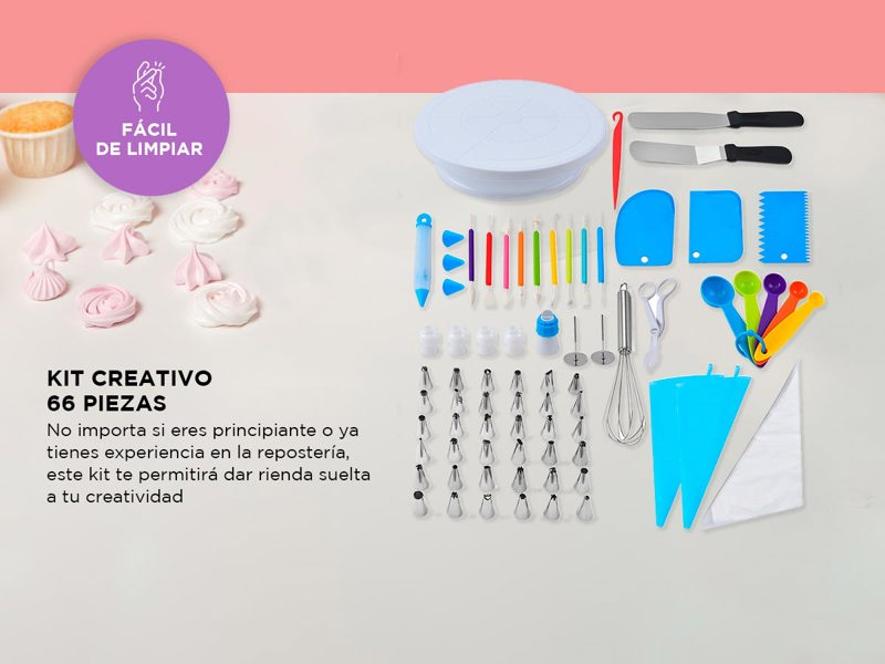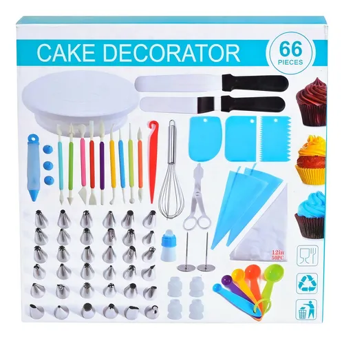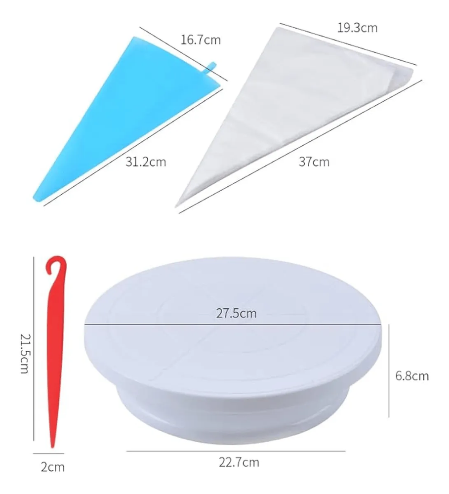 Características Principales: Plato Giratorio: El plato giratorio te permite decorar tus pasteles con facilidad y precisión, proporcionando un movimiento suave para aplicar glaseado y otros detalles. Kit de Pastelería Completo: Incluye manga pastelera, picos de diferentes formas, espátulas y otras herramientas esenciales para decorar pasteles y cupcakes. Materiales de Alta Calidad: Fabricado con materiales duraderos y seguros para alimentos, este set garantiza un rendimiento confiable y seguro para tu repostería. Versatilidad en la Decoración: Con una variedad de picos y herramientas, puedes crear una amplia gama de diseños y decoraciones para tus postres. Fácil de Limpiar: Las herramientas son fáciles de limpiar, lo que te permite mantener tu equipo de repostería en perfectas condiciones con poco esfuerzo. Especificaciones: Manga Pastelera: Incluye una manga pastelera reutilizable Accesorios: Espátulas, rasquetas, y otras herramientas de decoración