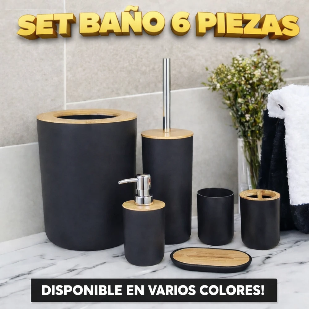 Transforma tu baño con este elegante y funcional set de accesorios fabricados con bambú natural y plástico resistente. Ideal para hogares, hoteles y oficinas, este set aporta durabilidad y estilo a cualquier entorno.