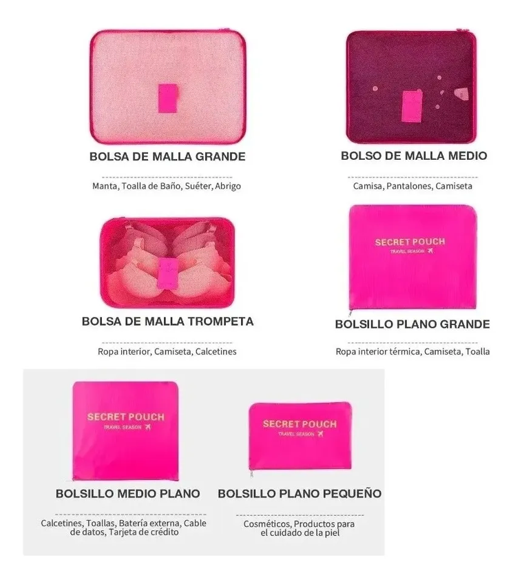 EN EL PACK TE VIENEN 6 UNIDADES DE ORGANIZADORES DE DIFERENTES TAMAÑOS.