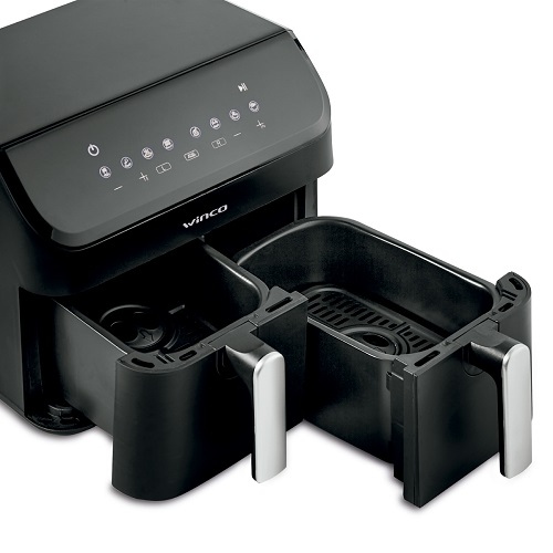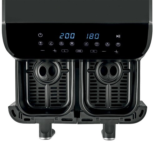 9 litros total de capacidad. 8 programas prestablecidos. Panel digital touch. Temporizador de 60 minutos. Regulador de temperatura y tiempo. Superficie antiadherente. Manijas frías al tacto. Potencia: 2000 W.