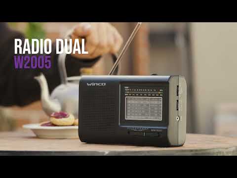 Radio portátil a pila o cable. Dual 220 V / DC 3 V = 2 pilas x 1.5 V C/u. AM/FM. 9 bandas. Antena telescópica. Medidas producto: 20 x 12 x 5 Cm. Medidas caja: 26 x 14.5 x 8 Cm. Peso: 565 Grs.