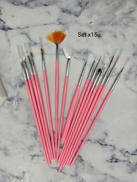 SET DE BROCHAS PINCELES PARA UÑAS DECORACION X15 UNIDADES /PPN