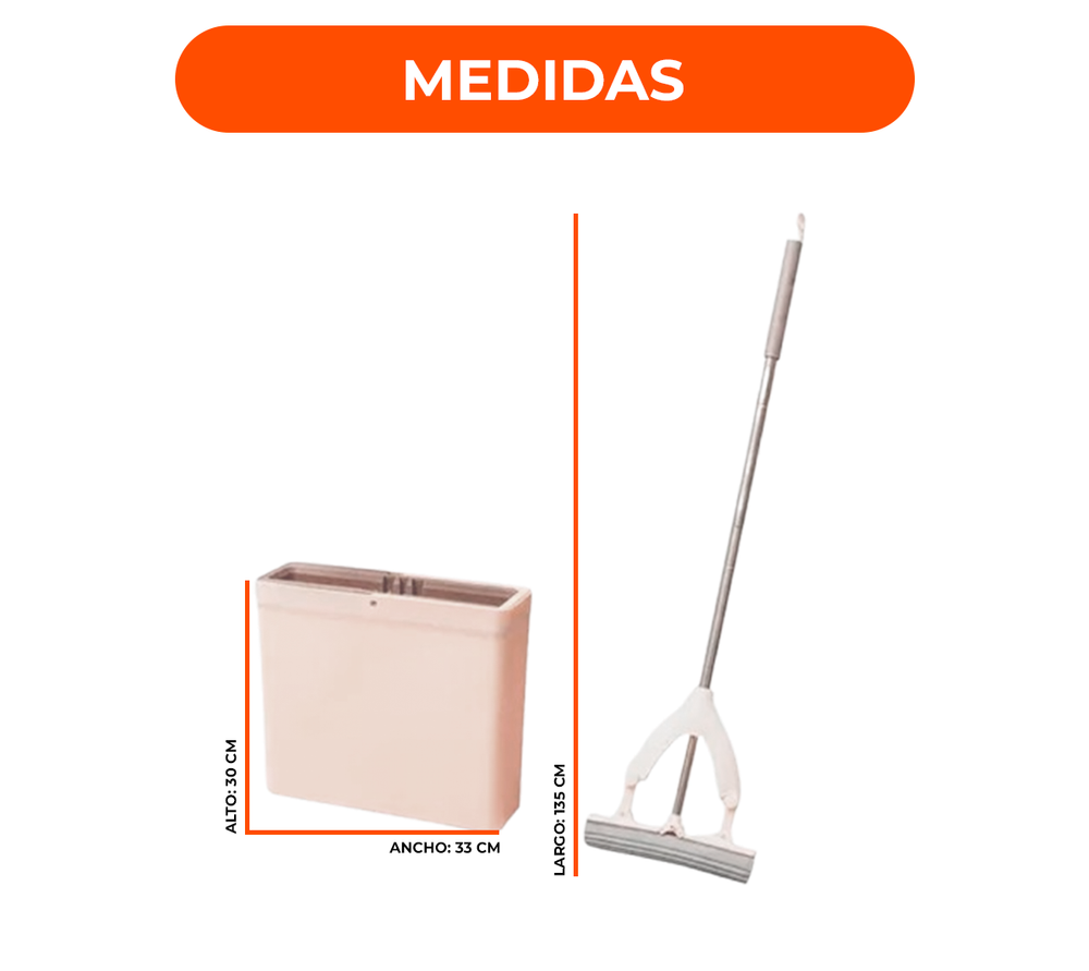 • Marca: Smart Tech • Modelo: LV-08 • Material del balde: Plástico • Material de la varilla: Acero • Altura máxima: 138 cm • Material de la mopa: Esponja • Medida de la mopa: 28 cm • Medidas del balde armado: 36 x 23.5 cm • Peso: 1.2 kg