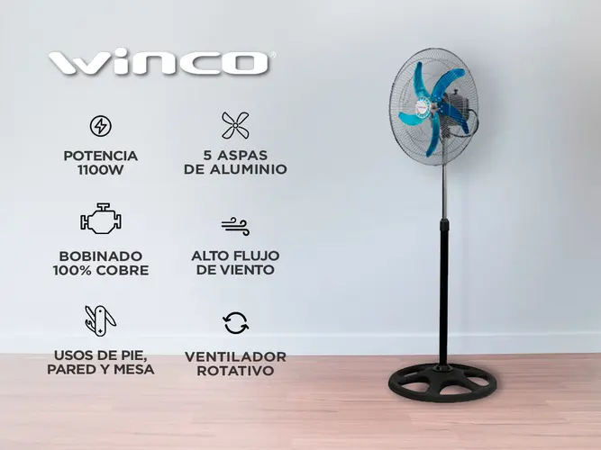 Pie / Piso / Pared - 3 Niveles de Potencia - 5 Aspas - 110W