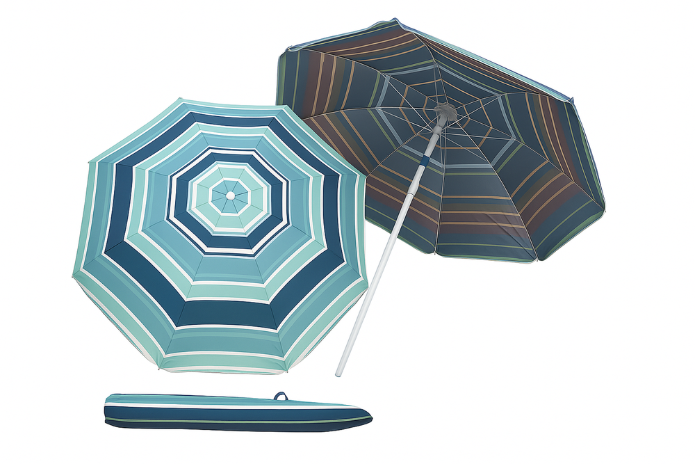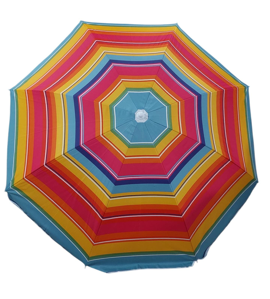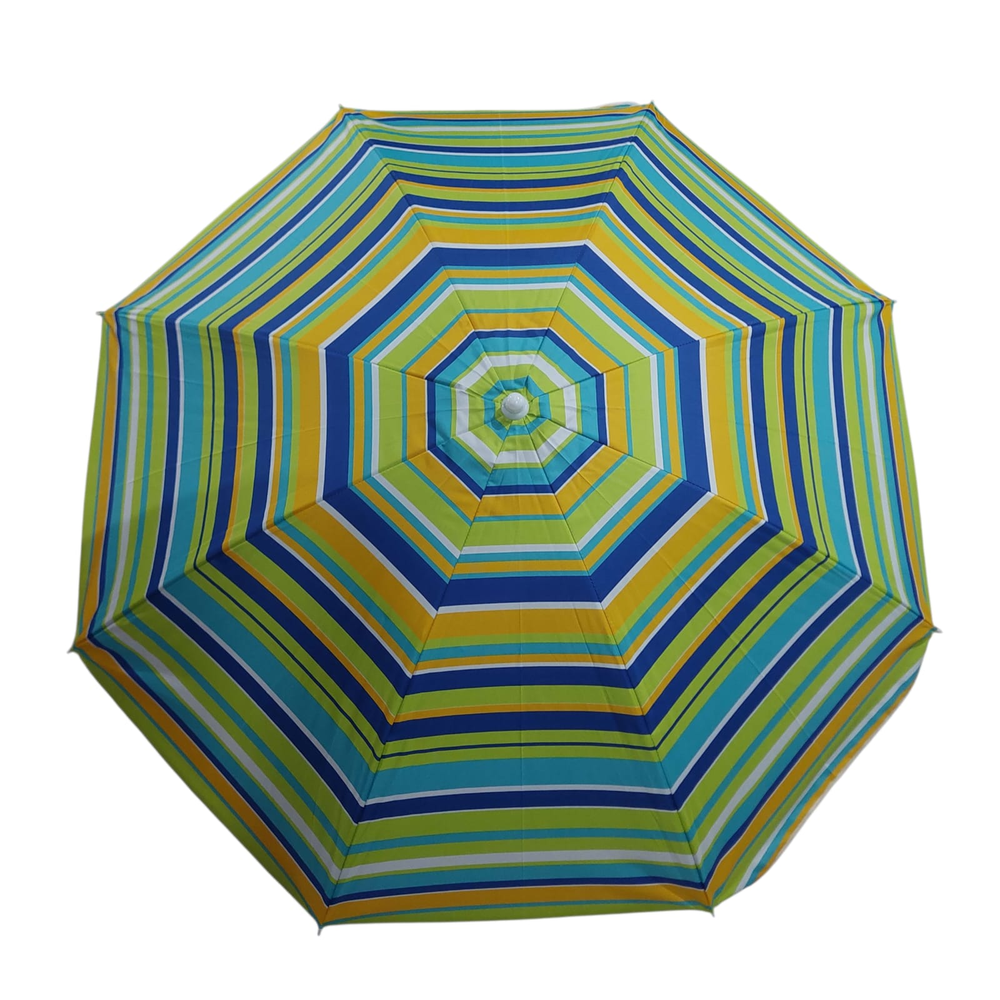 Material de la sombrilla: poliéster. Material de la estructura: metal. Usos recomendados: Playa. Peso: 2kg. Con altura regulable. INCLUYE FUNDA