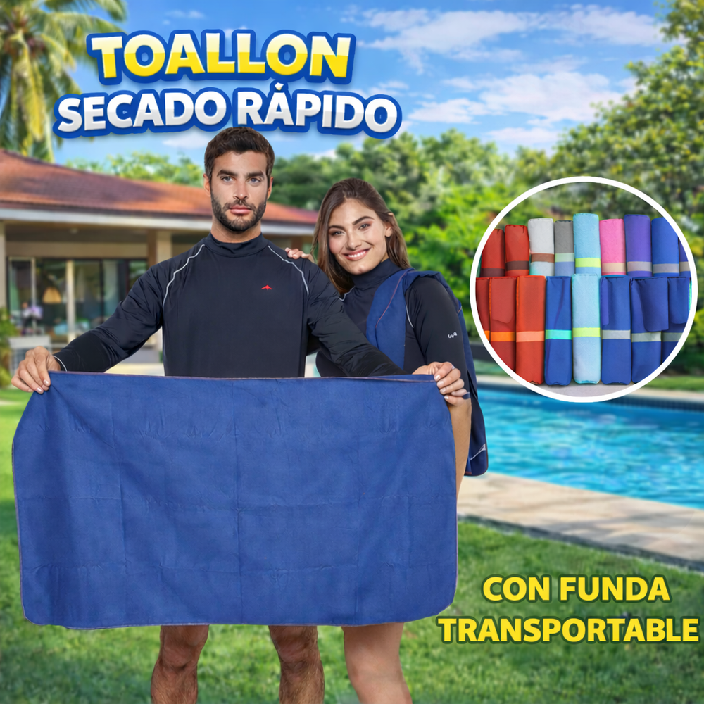 Una toalla de secado rápido con funda es una toalla ligera y absorbente, usualmente de microfibra (Poliéster/Poliamida), diseñada para secar el cuerpo muy rápido y, a su vez, secarse ella misma velozmente, evitando olores; la funda (bolsa o estuche) es su accesorio clave para guardarla de forma compacta y transportarla fácilmente, ideal para deportes, viajes, playa o gimnasio.