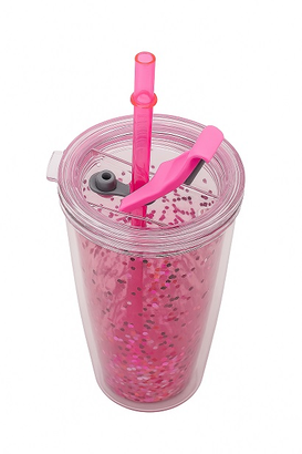 Este vaso térmico está fabricado en acrílico de alta resistencia y cuenta con un diseño de doble capa, ideal para mantener la temperatura de tus bebidas por más tiempo. Su interior contiene brillo flotante que se mueve con el vaso, dándole un efecto visual llamativo y moderno.