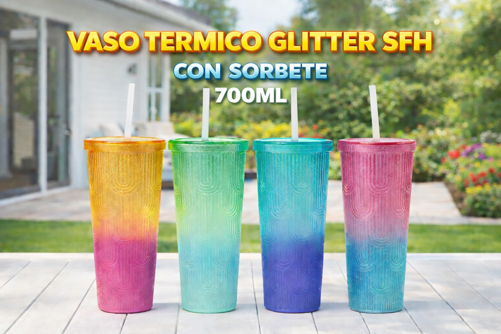 VASO GRANDE GLITTER TERMICO CON SORBETE 700ML T07062 SFH