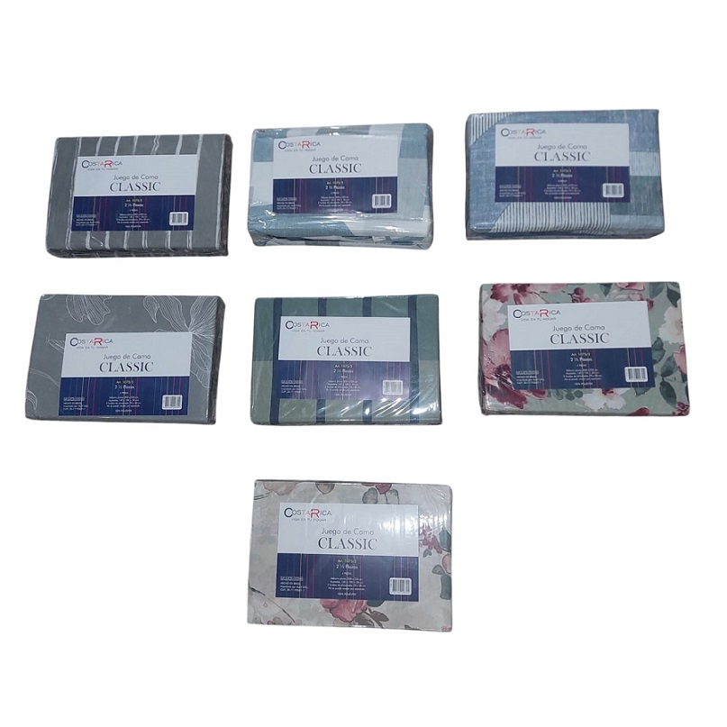1 SABANA PLANA 200 CM X 220 CM 1 SABANA AJUSTABLE 140 CM X 190 CM + 20 CM 1 FUNDA DE ALMOHADA 70 CM X 50 CM HECHO EN BRASIL