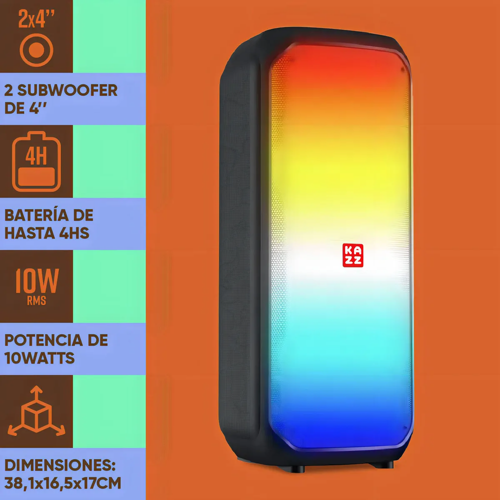 El Kazz Rudi es un parlante portátil de alto rendimiento, diseñado para ofrecer una experiencia sonora envolvente en cualquier entorno. Su diseño compacto y funcional permite transportarlo con facilidad, convirtiéndolo en una opción ideal tanto para el hogar como para actividades al aire libre.