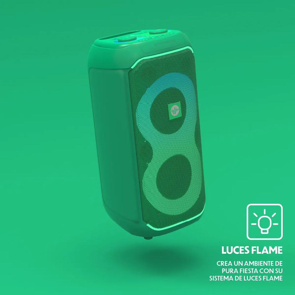 Lleva la fiesta donde quieras Diseñado para ser tu compañero ideal, el parlante Stromberg Lyric cuenta con una batería de larga duración de hasta 8 horas, permitiéndote disfrutar de tu música sin interrupciones. Con su conexión Bluetooth, puedes vincular fácilmente tu celular o cualquier otro dispositivo. Además, sus luces flame añaden un toque festivo y visualmente atractivo.