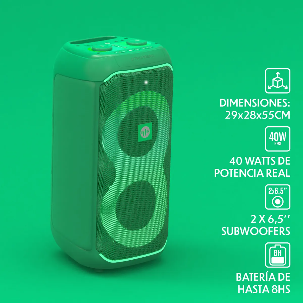 Experimenta un sonido potente y de calidad El parlante Stromberg Lyric te ofrece una experiencia de audio excepcional con sus 40 watts RMS de potencia real. Equipado con dos subwoofers de 6.5 pulgadas, este parlante portátil garantiza graves profundos y un sonido claro, ideal para animar cualquier fiesta o reunión. Además, su ecualizador digital te permite ajustar el sonido a tu gusto, asegurando que cada canción suene perfecta.