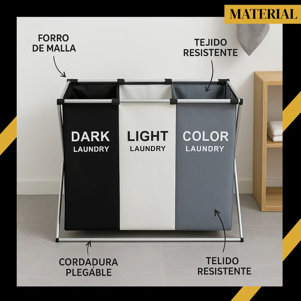 Fabricado en tela reforzada, este cesto es resistente y duradero, asegurando que pueda soportar el uso diario sin comprometer su estructura. Su diseño plegable permite guardarlo fácilmente cuando no está en uso, ahorrando espacio en tu hogar. Además, cuenta con un agarre que facilita su transporte, haciendo que llevar la ropa al lavadero sea una tarea sencilla.