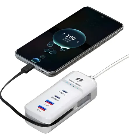 Simplificá tu día a día con el Rack Charger de 66W, un cargador múltiple con tecnología de carga rápida que permite alimentar hasta 4 dispositivos al mismo tiempo. Ideal para celulares, tablets, auriculares, consolas y más.