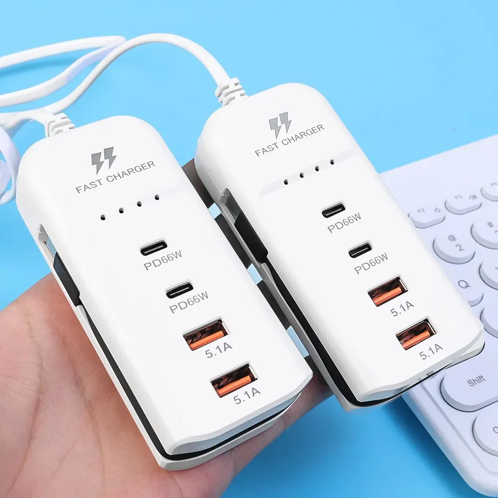 Cargador Múltiple Rack Charger 66W | 2 USB-C + 2 USB | Carga Rápida