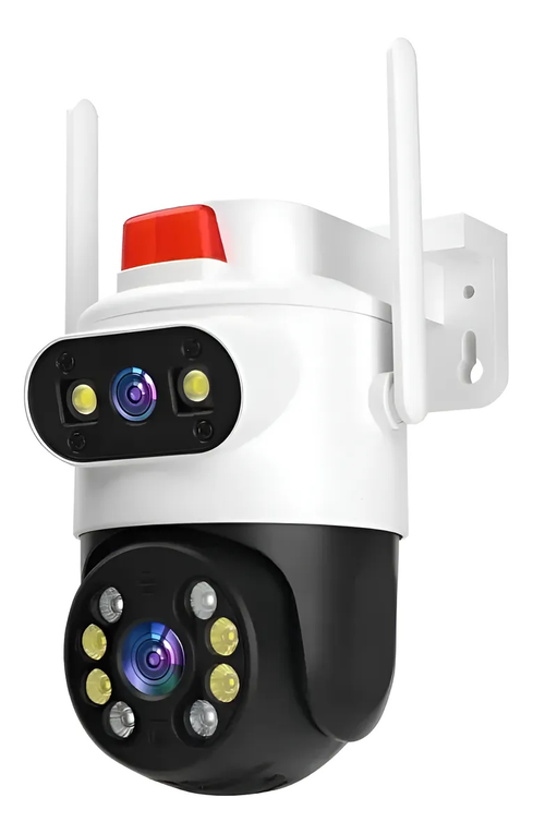 Cuenta con visión nocturna, ideal para monitoreo las 24 horas, incluso en ambientes con poca luz. Su diseño en color blanco, compacto y discreto, es perfecto para montaje en pared.