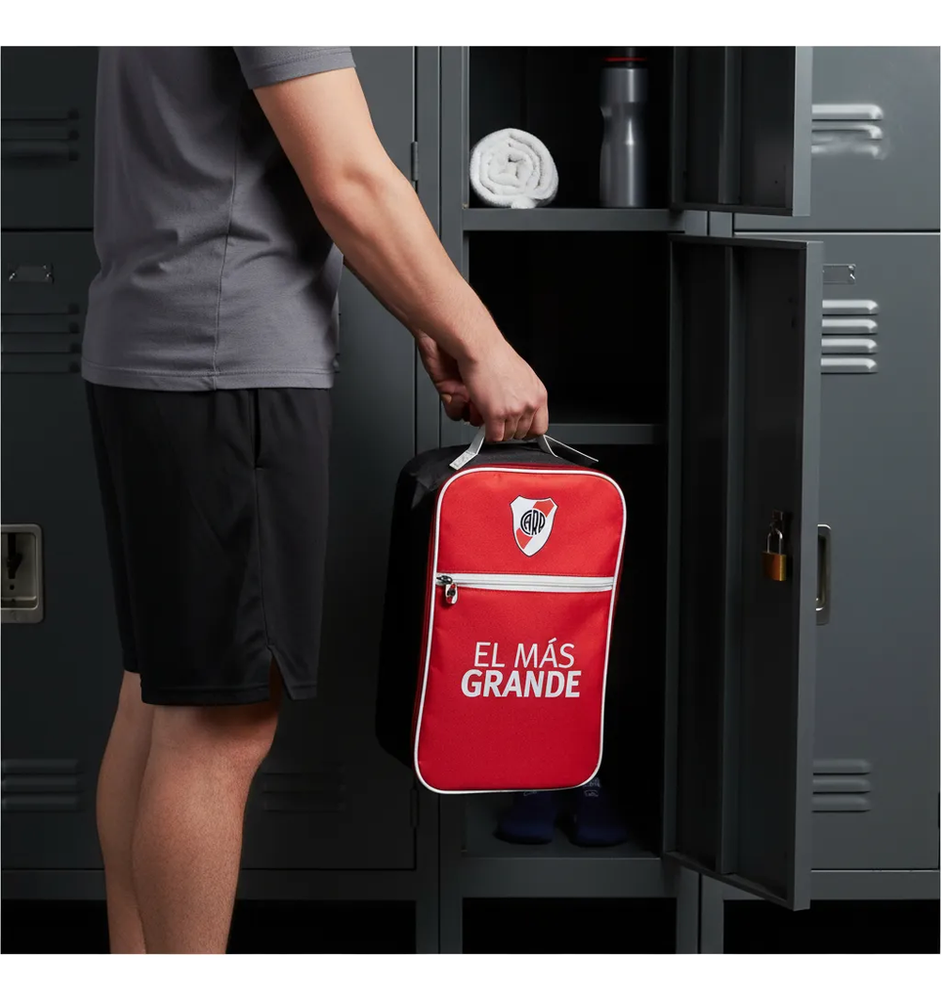 El Botinero River Plate es el accesorio ideal para los verdaderos aficionados al fútbol que buscan expresar su pasión por su equipo. Con un diseño liso y elegante, elaborado en resistente poliéster, este botinero combina estilo y funcionalidad. Su tamaño compacto, con dimensiones de 32 cm de largo, 18 cm de ancho y 15 cm de alto, lo convierte en una opción práctica para transportar el calzado de forma ordenada y segura. Cuenta con un cierre duradero y un bolsillo exterior que agrega facilidad de acceso para pequeños objetos. Con una capacidad de 900 mL, ofrece suficiente espacio para guardar tus botines y otros artículos esenciales de manera eficiente. Este botinero es perfecto tanto para ir a entrenamientos como para llevar al estadio, asegurando que tus pertenencias estén siempre protegidas y a mano. Aprovecha la oportunidad de mostrar tu lealtad a River Plate mientras mantienes tu equipo de fútbol en condiciones óptimas. Su diseño atractivo y compacto lo convierte en un regalo perfecto para cualquier amante del deporte. Ideal para complementar tu colección de artículos del club y llevar contigo la esencia de tu equipo en cada partido.