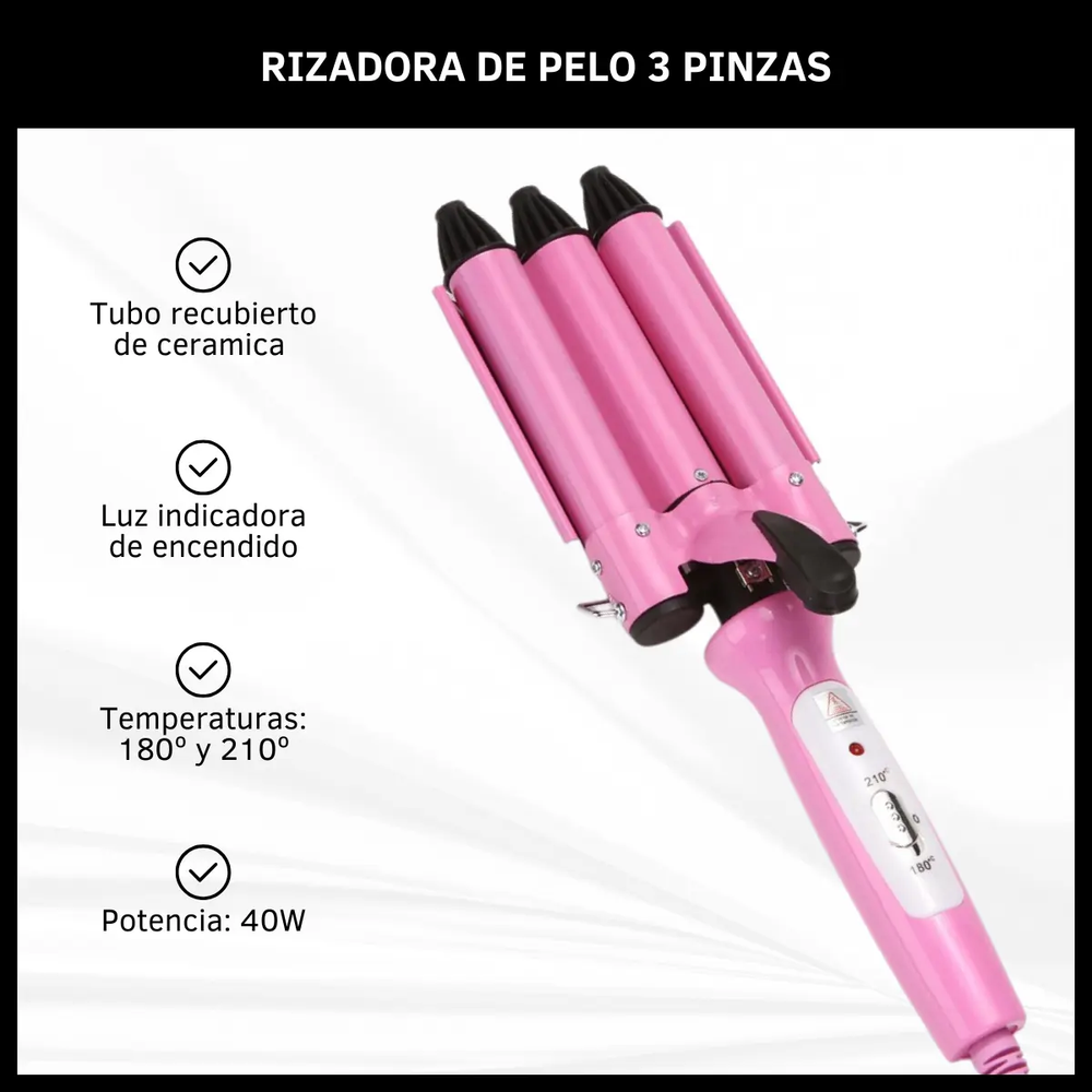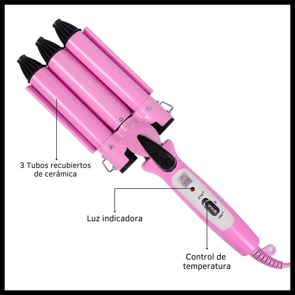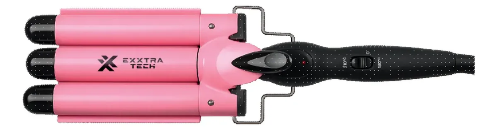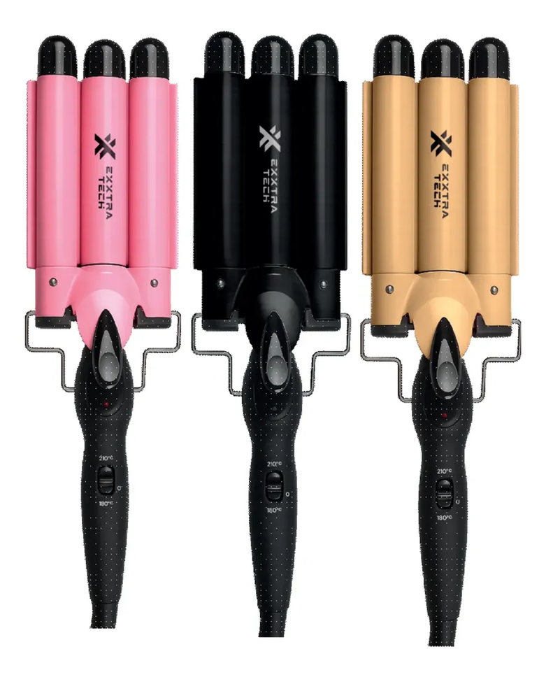 La Buclera Profesional Triple de 3 Tubos de Extra Tech es la herramienta ideal para quienes buscan crear rizos perfectos y duraderos. Su diseño innovador permite obtener ondas voluminosas y definidas en poco tiempo, gracias a su cabezal de cerámica de turmalina que distribuye el calor de manera uniforme, minimizando el daño al cabello. Con un rango de temperatura de 180 °C a 210 °C, esta buclera se adapta a diferentes tipos de cabello, asegurando resultados óptimos sin comprometer la salud del mismo. Su uso es sencillo y eficiente, permitiendo que tanto principiantes como expertos logren un acabado profesional en la comodidad de su hogar. El modelo NHS-13006 no es inalámbrico, lo que garantiza un rendimiento constante durante su uso. Aunque no cuenta con cable giratorio ni pantalla LED, su diseño ergonómico facilita la manipulación, haciendo que el proceso de peinado sea más cómodo y rápido. Transforma tu look diario o prepárate para ocasiones especiales con la Buclera Profesional Triple de Extra Tech. Con esta herramienta, cada día puede ser una oportunidad para lucir un estilo diferente y deslumbrante.