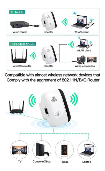 Mejora la señal de tu wifi con el Repetidor Amplificador Wifi Señal 300 Mbps. Con su velocidad inalámbrica de 300 Mbps, podrás disfrutar de una conexión estable y rápida en toda tu casa. Su diseño en color blanco se adapta a cualquier ambiente. Fácil de instalar, este repetidor amplifica la señal de tu router para que puedas navegar sin interrupciones. Compatible con conexiones inalámbricas y con frecuencias de 2.41 GHz x 2.48 GHz, este repetidor es perfecto para mejorar tu experiencia de navegación. No pierdas más tiempo con conexiones lentas, adquiere el Repetidor Amplificador Wifi Señal 300 Mbps y disfruta de una conexión de calidad en todos tus dispositivos.